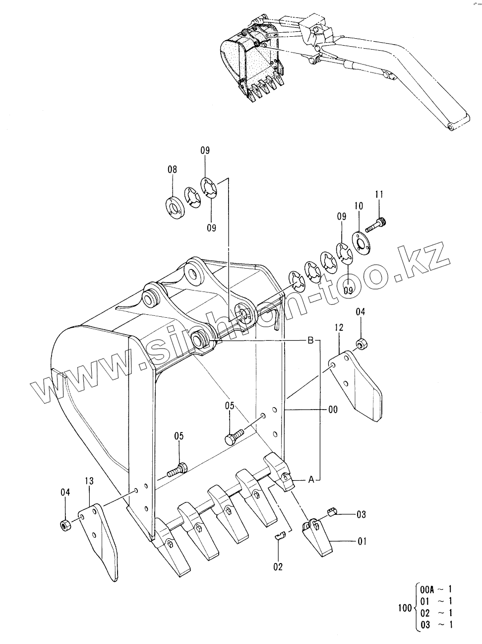 Каталог запасных частей к технике: Hitachi EX-60-3. BUCKET (0.3)<SHORT REACH>