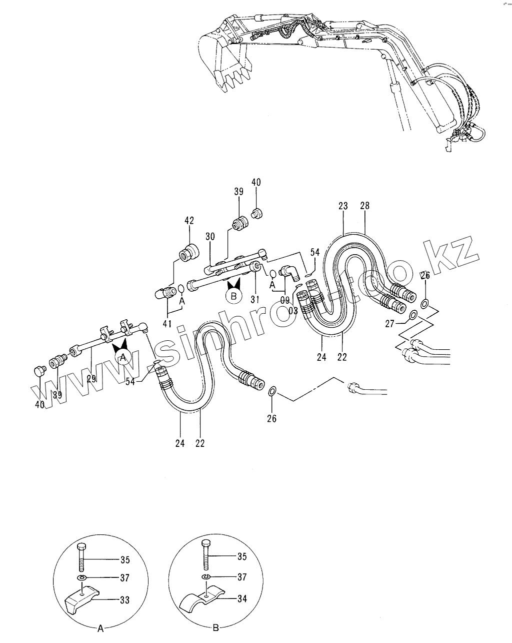 Каталог запасных частей к технике: Hitachi EX-60-3. FRONT PIPINGS (LONG ARM) <VIBRATOR>