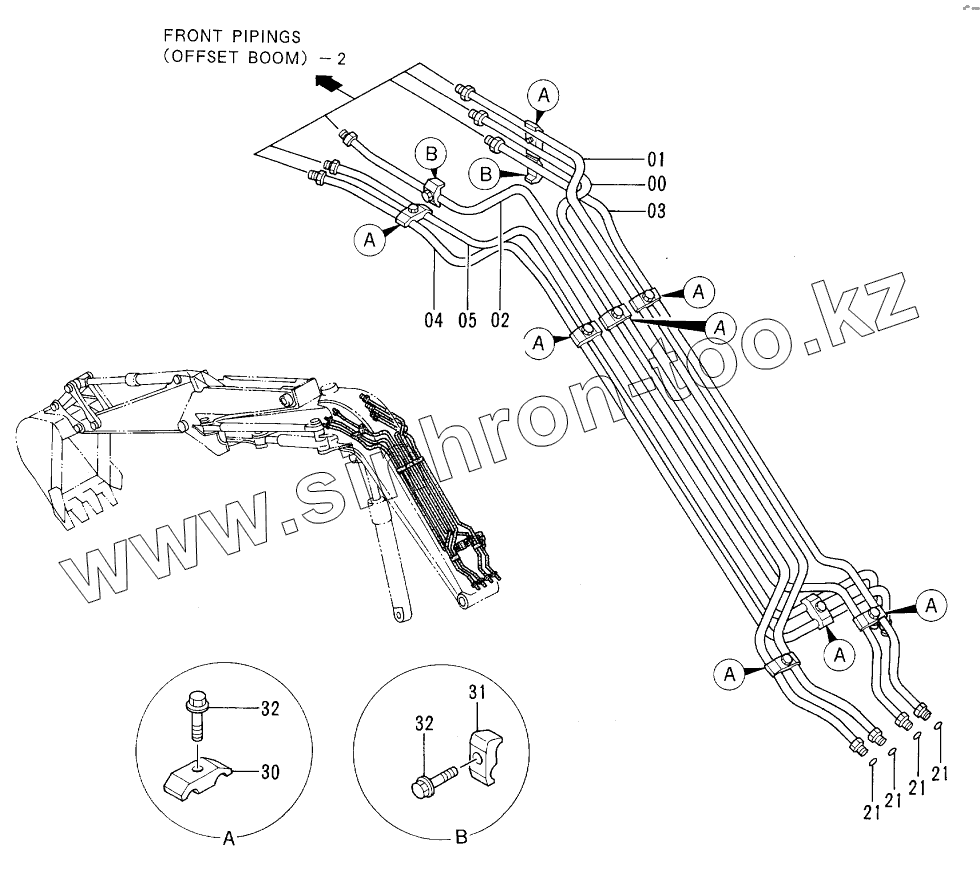 Каталог запасных частей к технике: Hitachi EX-60-3. FRONT PIPINGS <OFFSET BOOM>