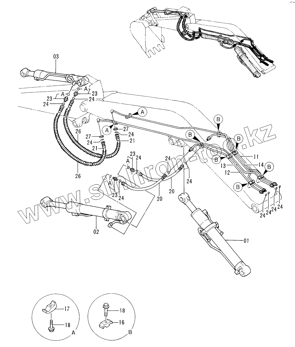 Каталог запасных частей к технике: Hitachi EX-60-3. FRONT PIPINGS <SHORT REACH>