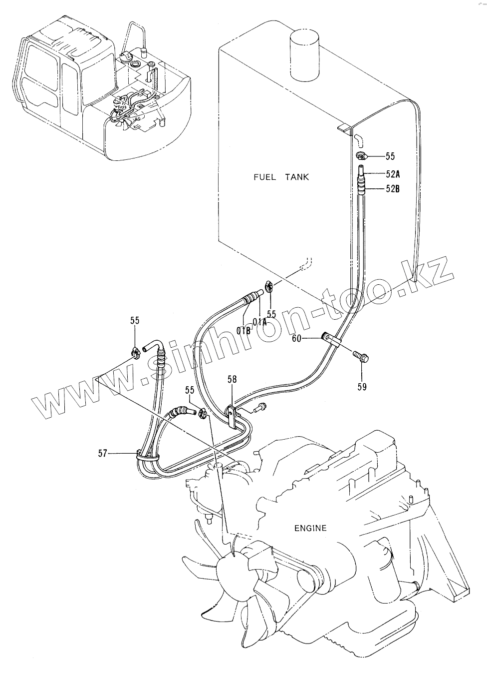 Каталог запасных частей к технике: Hitachi EX-60-3. FUEL PIPINGS