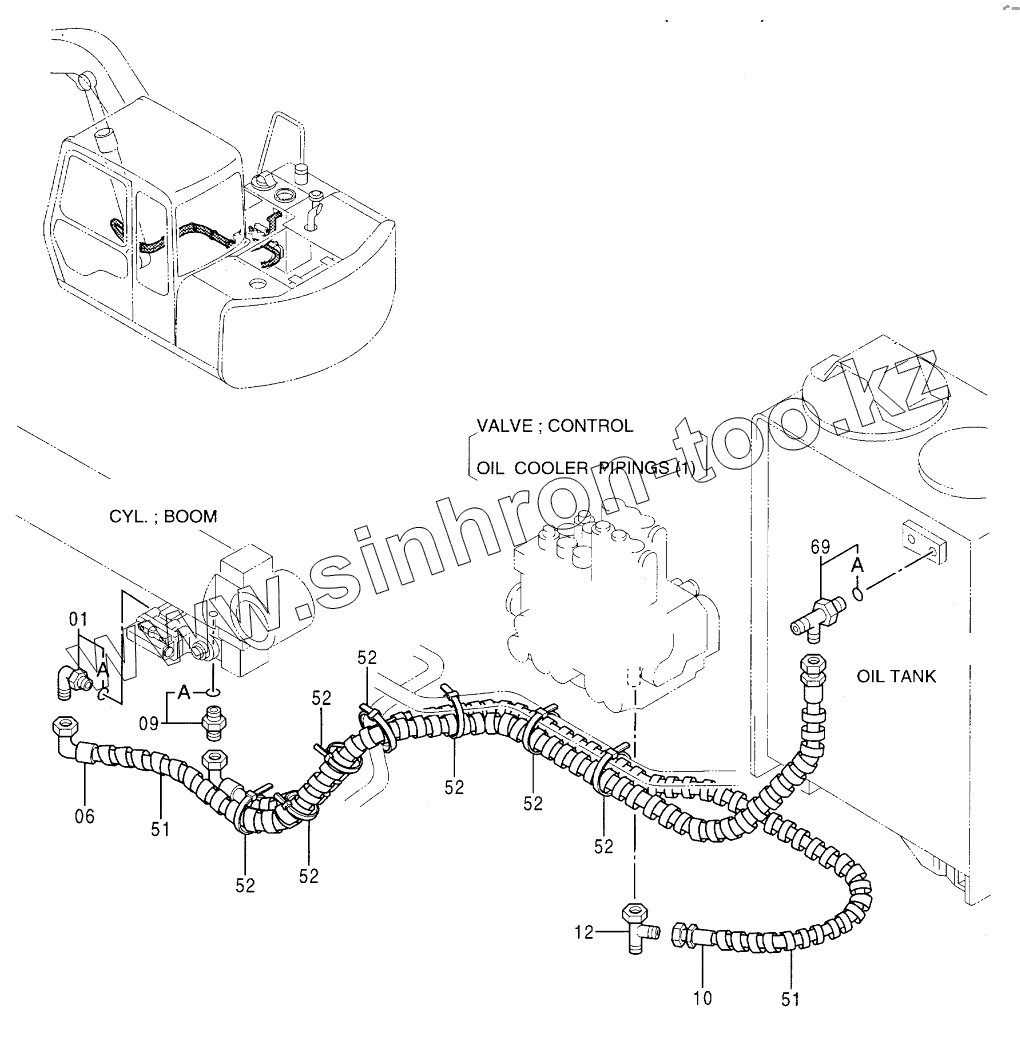 Каталог запасных частей к технике: Hitachi EX-60-3. HOSE RUPTURE VALVE PIPINGS (BOOM)