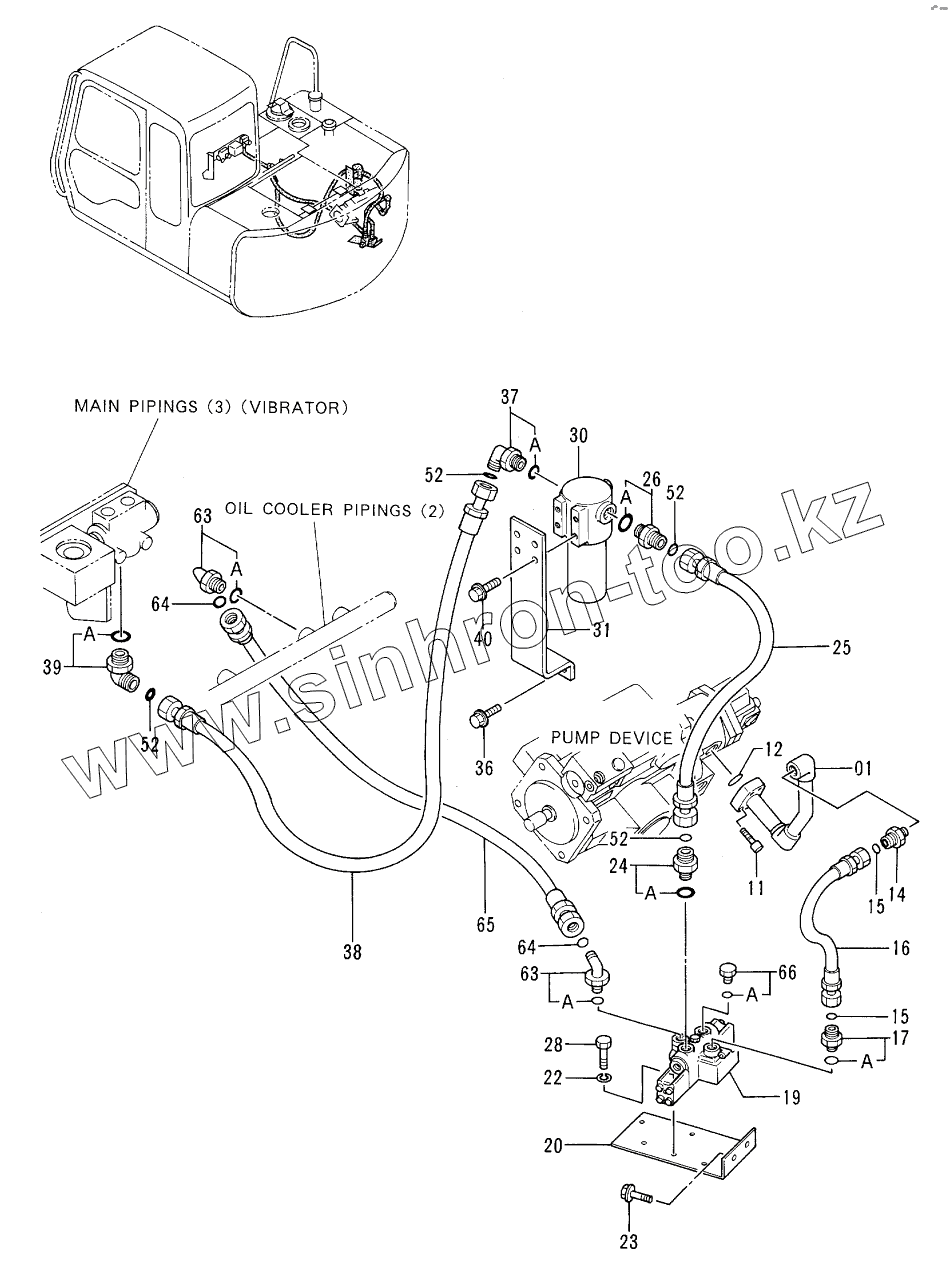 Каталог запасных частей к технике: Hitachi EX-60-3. MAIN PIPINGS <VIBRATOR>