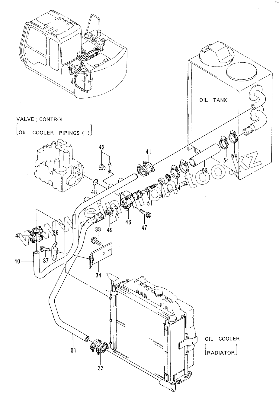 Каталог запасных частей к технике: Hitachi EX-60-3. OIL COOLER PIPINGS