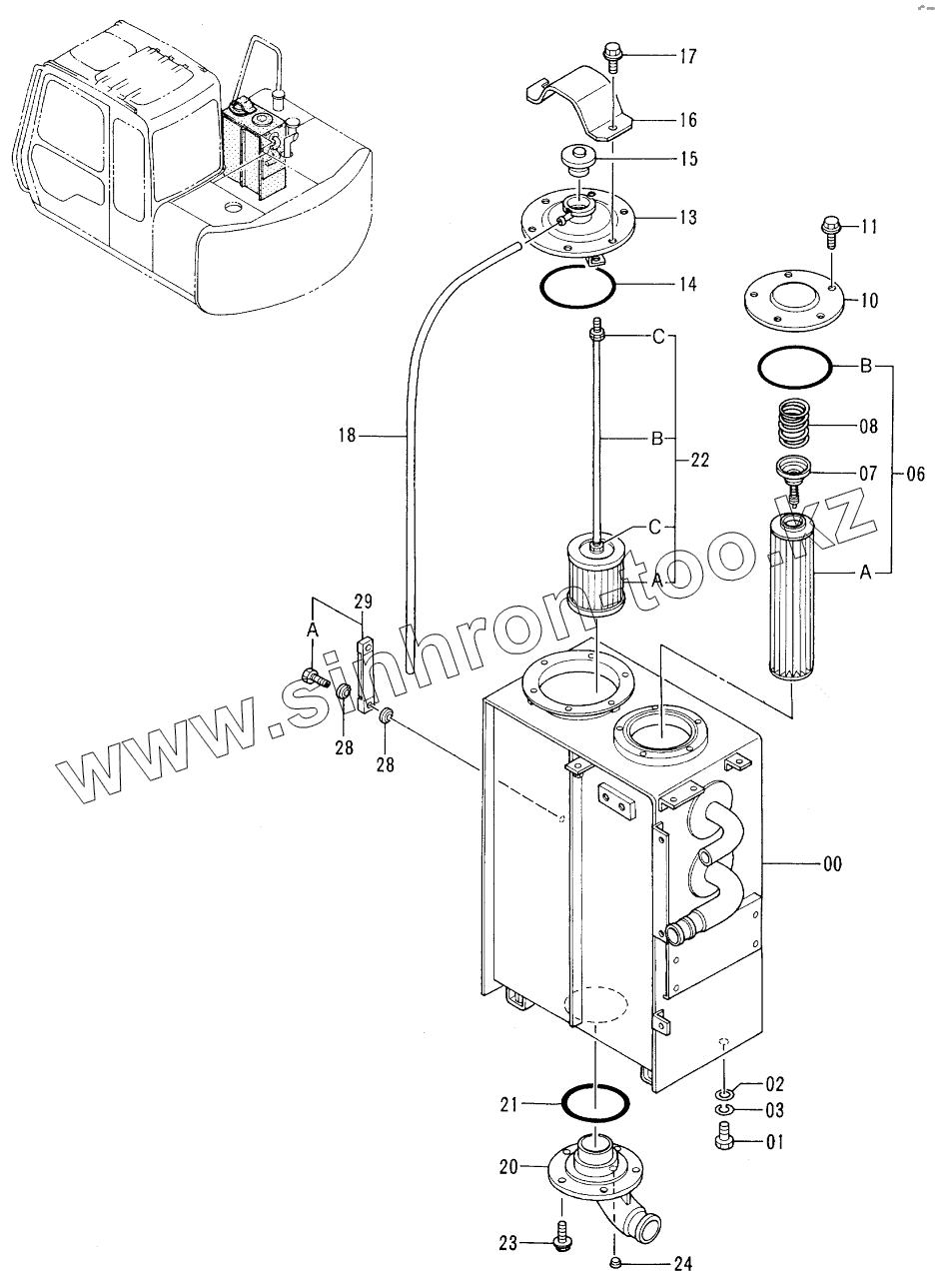 Каталог запасных частей к технике: Hitachi EX-60-3. OIL TANK