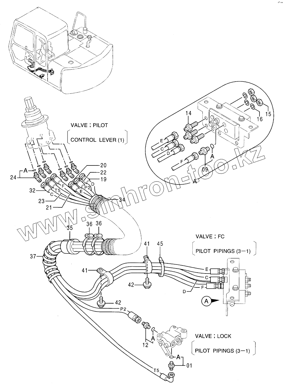 Каталог запасных частей к технике: Hitachi EX-60-3. PILOT PIPINGS (EU)(N.EUROPE)