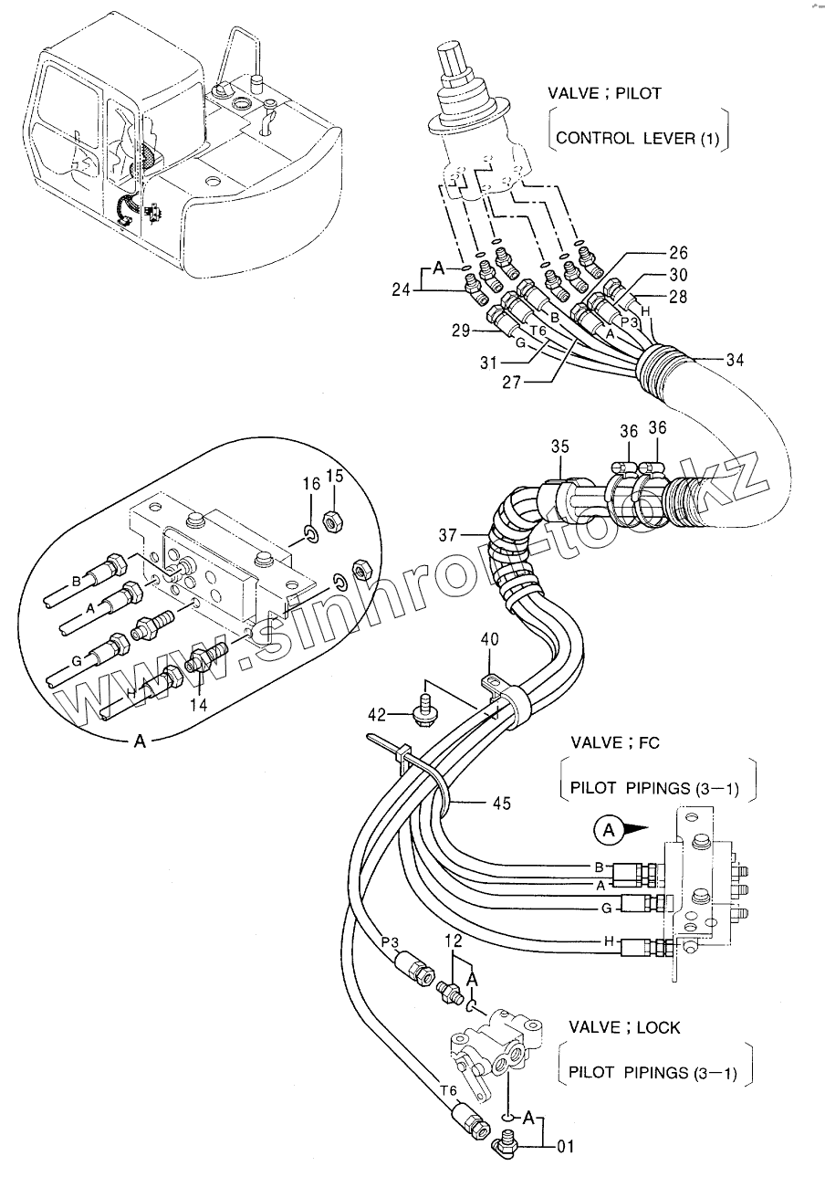 Каталог запасных частей к технике: Hitachi EX-60-3. PILOT PIPINGS (EU)(N.EUROPE)