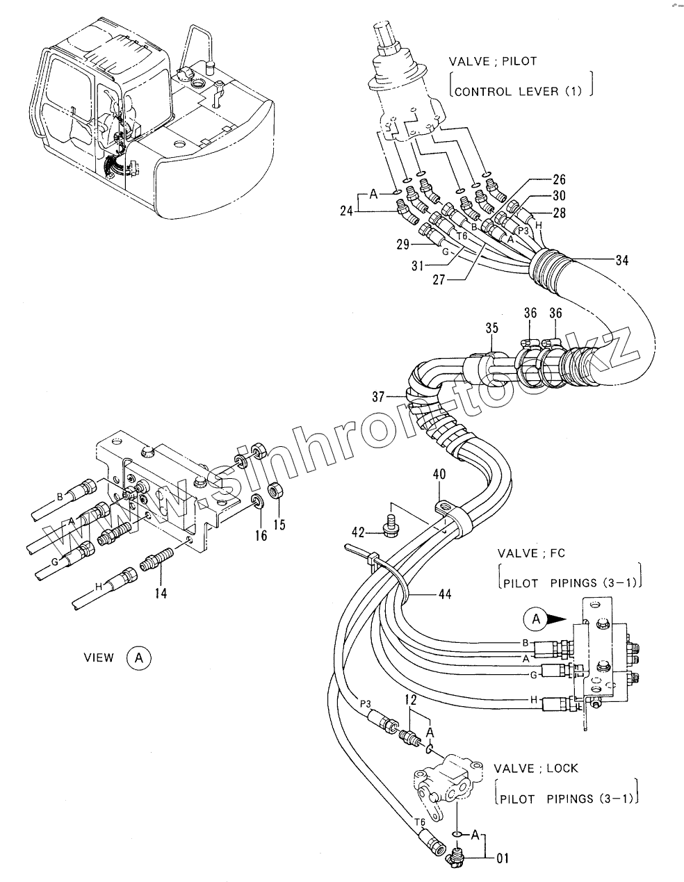 Каталог запасных частей к технике: Hitachi EX-60-3. PILOT PIPINGS (STD)