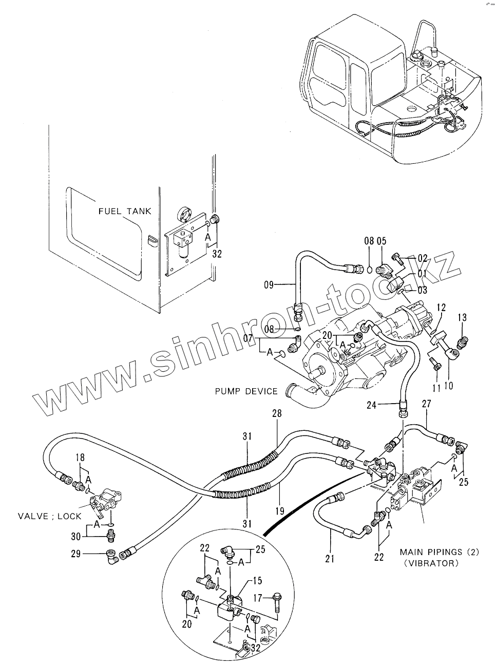Каталог запасных частей к технике: Hitachi EX-60-3. PILOT PIPINGS <VIBRATOR>