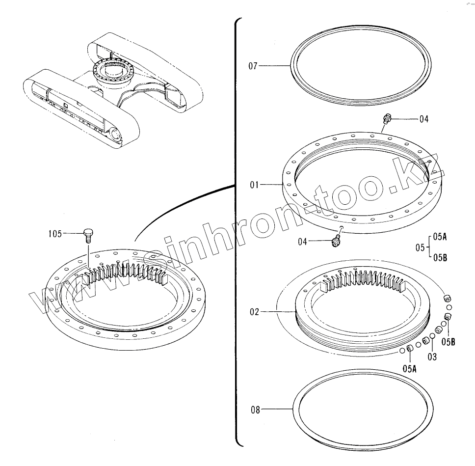 Каталог запасных частей к технике: Hitachi EX-60-3. SWING BEARING