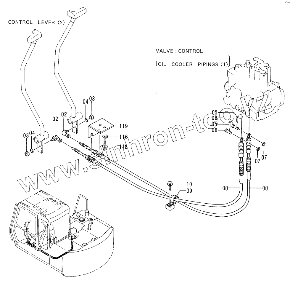Каталог запасных частей к технике: Hitachi EX-60-3. TRAVEL LEVER CABLE