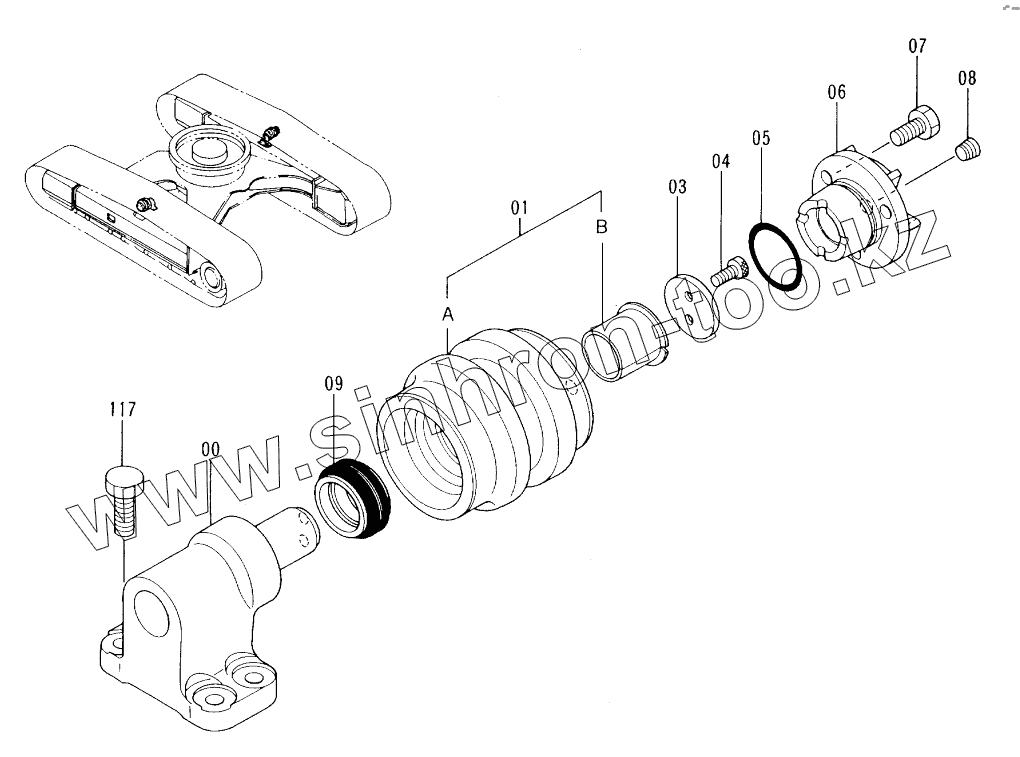 Каталог запасных частей к технике: Hitachi EX-60-3. UPPER ROLLER