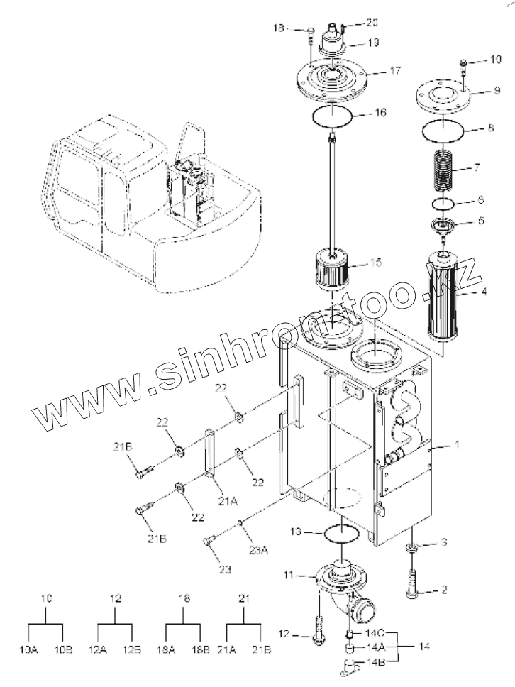 Каталог запасных частей к технике: Hitachi EX-70. OIL TANK ASSEMBLY