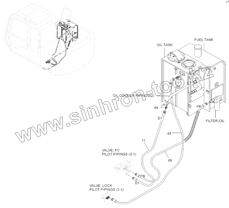 Каталог запасных частей к технике: Hitachi EX-70. PILOT PIPING (1)