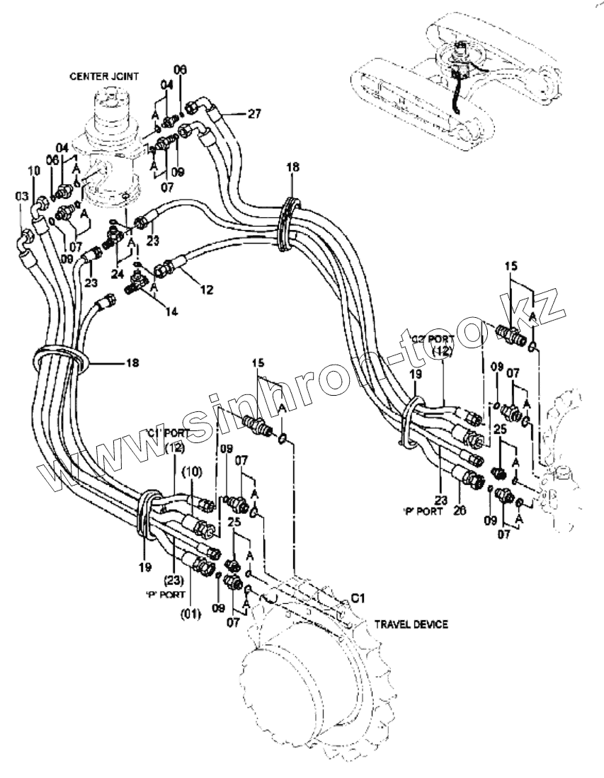 Каталог запасных частей к технике: Hitachi EX-70. TRAVEL PIPING