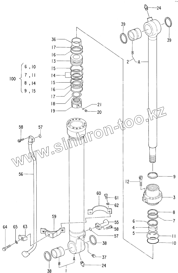 Каталог запасных частей к технике: Hitachi Компоненты EX-100-2. CYL., BUCKET 30001-