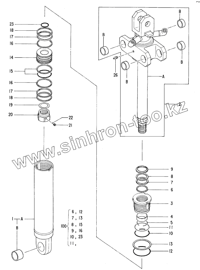 Каталог запасных частей к технике: Hitachi Компоненты EX-100-2. CYL., CLAMSHELL 30001-