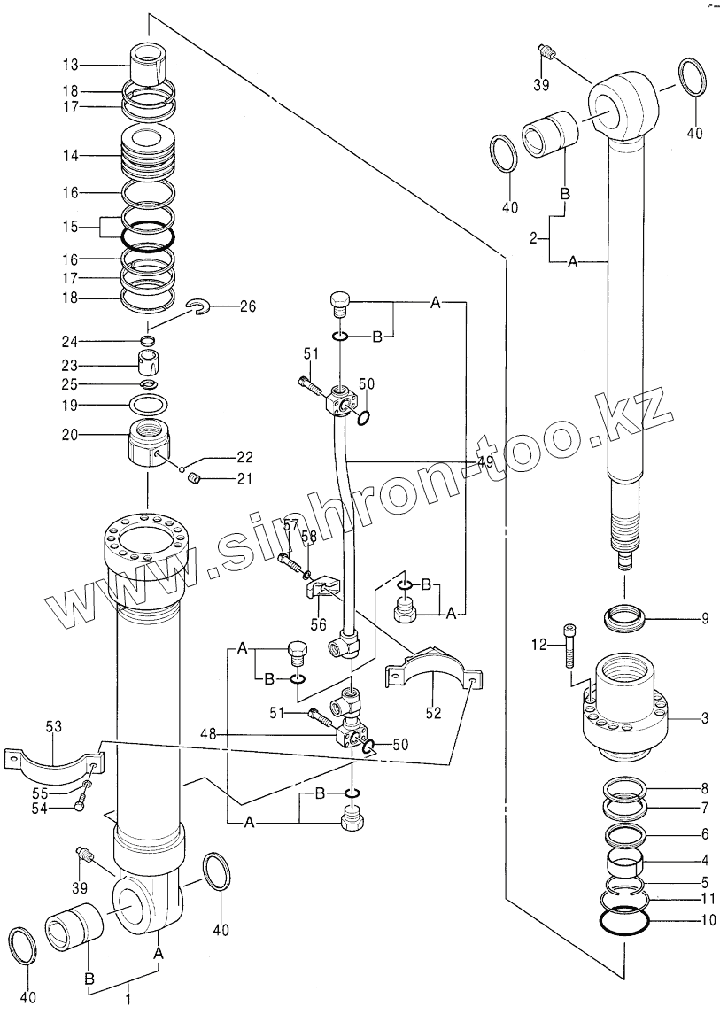 Каталог запасных частей к технике: Hitachi Компоненты EX-100-2. CYL., OFFSET (OFFSET BOOM) 30001-