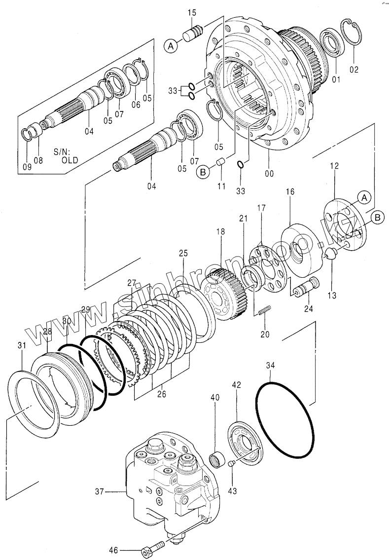Каталог запасных частей к технике: Hitachi Компоненты EX-100-2. MOTOR, OIL (TRAVEL) H02363-