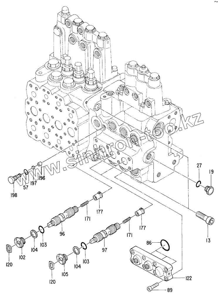 Каталог запасных частей к технике: Hitachi Компоненты EX-100-2. VALVE, CONTROL (1/8) 31115-