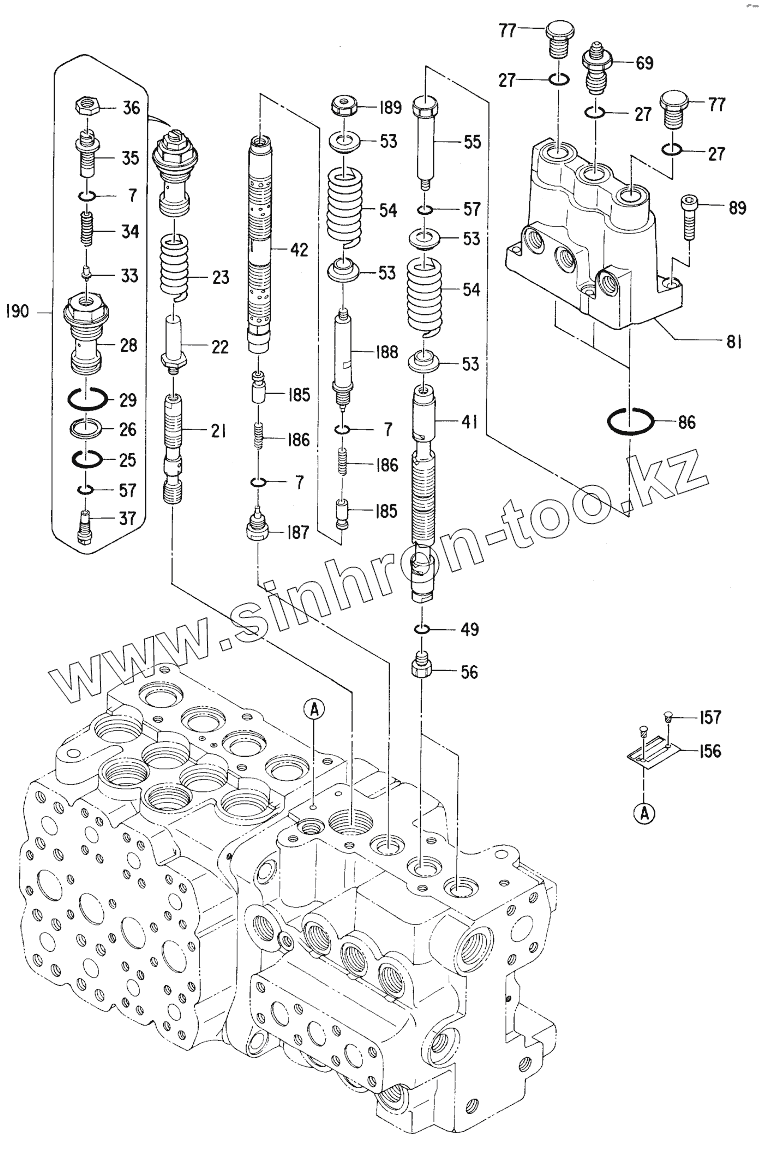 Каталог запасных частей к технике: Hitachi Компоненты EX-100-2. VALVE, CONTROL (3/8) 31115-