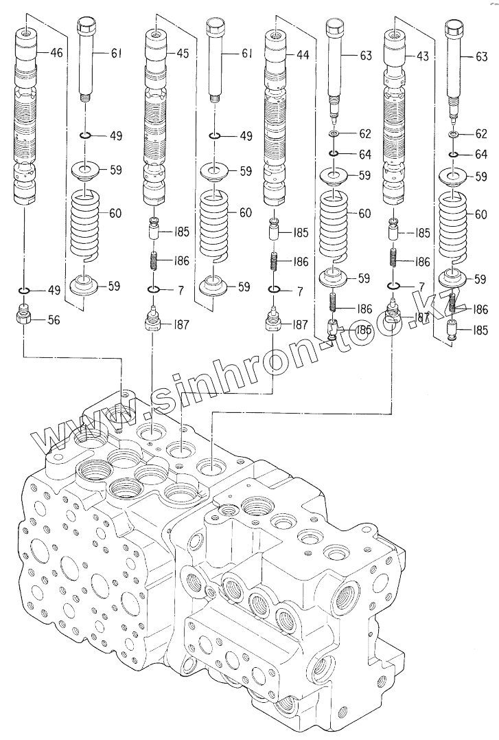 Каталог запасных частей к технике: Hitachi Компоненты EX-100-2. VALVE, CONTROL (4/8) 30001-31114