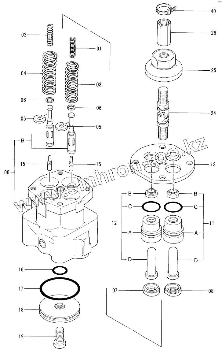 Каталог запасных частей к технике: Hitachi Компоненты EX-100-2. VALVE, PILOT 30001-