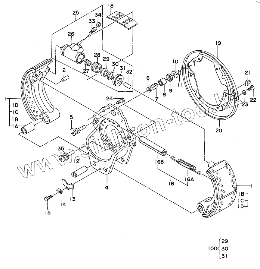 Каталог запасных частей к технике: Hitachi Компоненты EX-100WD. BRAKE