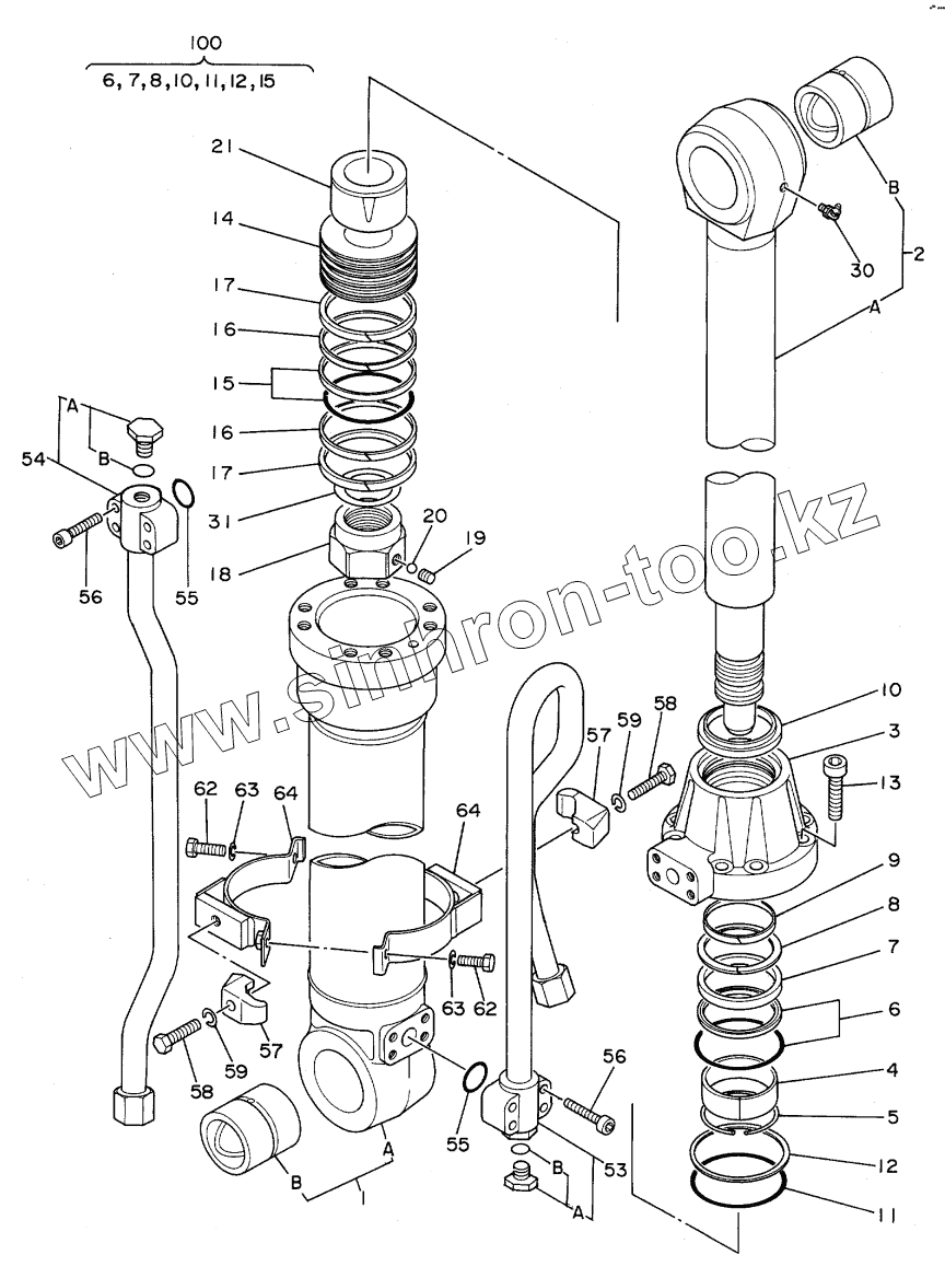 Каталог запасных частей к технике: Hitachi Компоненты EX-100WD. CYL., ARM