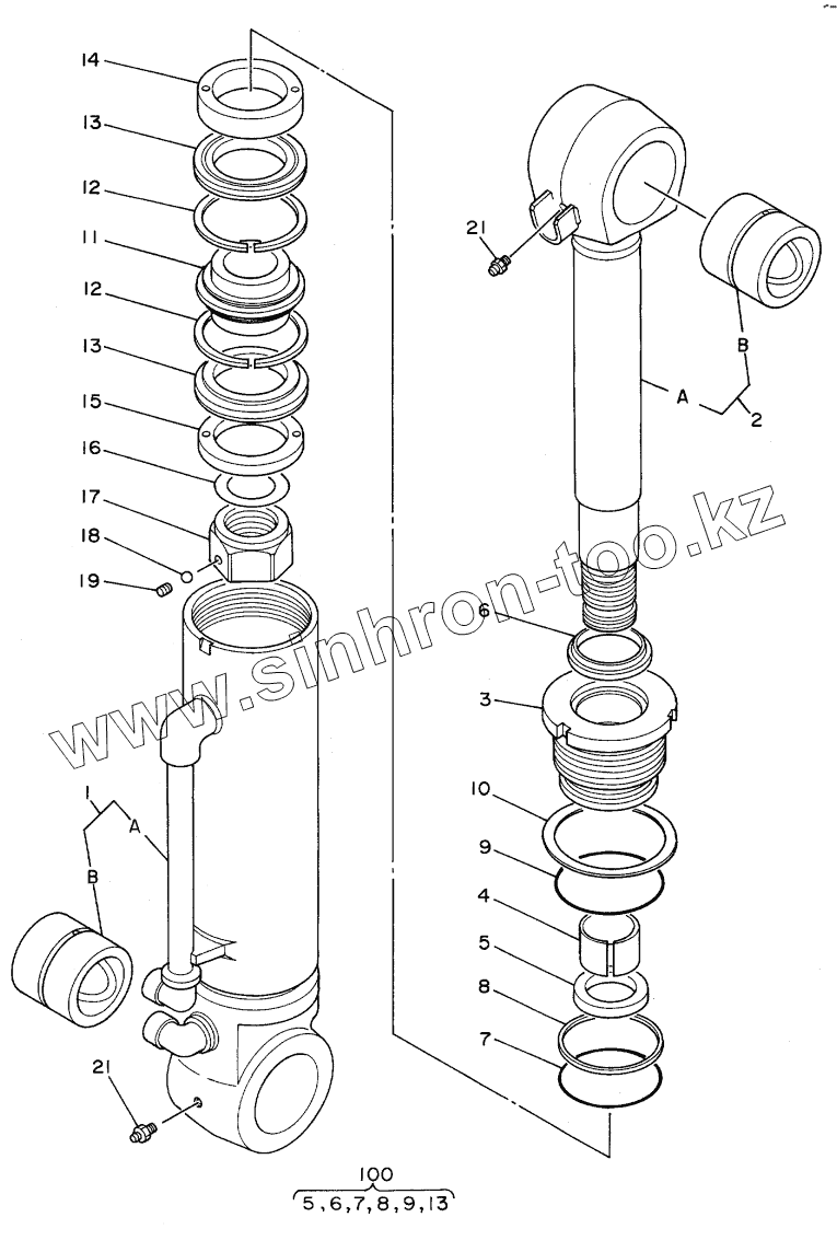 Каталог запасных частей к технике: Hitachi Компоненты EX-100WD. CYL., BLADE (L)