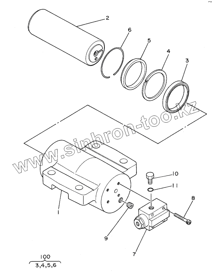 Каталог запасных частей к технике: Hitachi Компоненты EX-100WD. CYL., RAM (R)