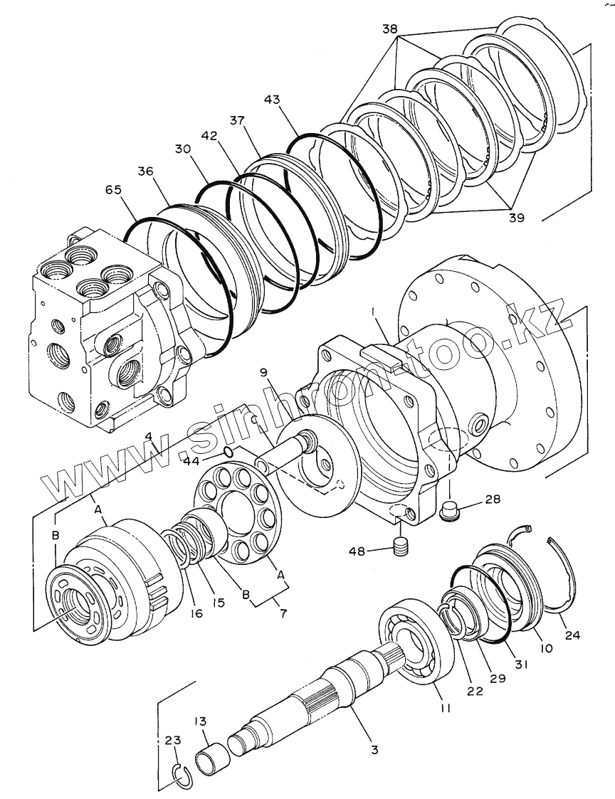 Каталог запасных частей к технике: Hitachi Компоненты EX-100WD. MOTOR, OIL (1/2)