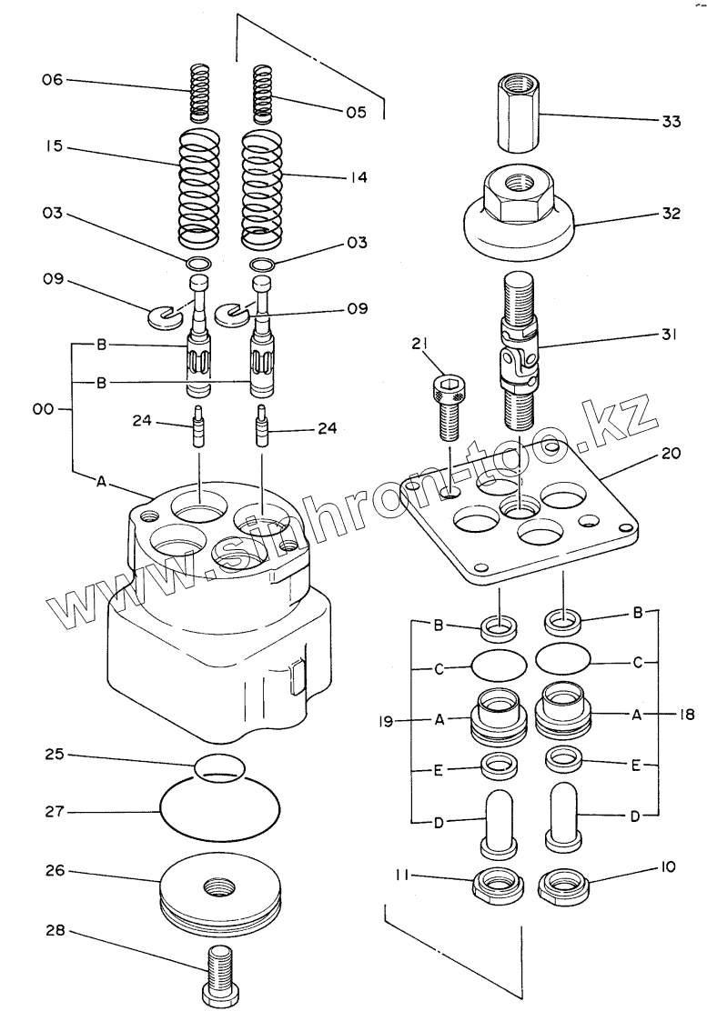 Каталог запасных частей к технике: Hitachi Компоненты EX-100WD. VALVE, PIL0T (R), (L)