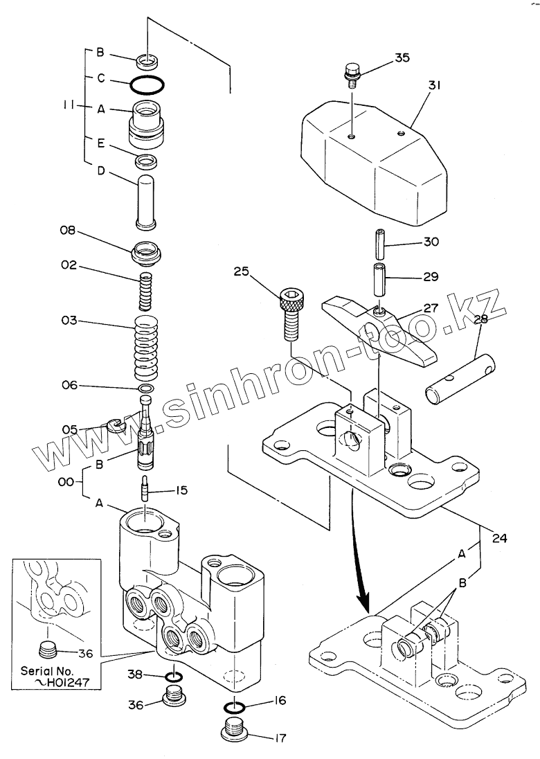 Каталог запасных частей к технике: Hitachi Компоненты EX-100WD. VALVE, PILOT