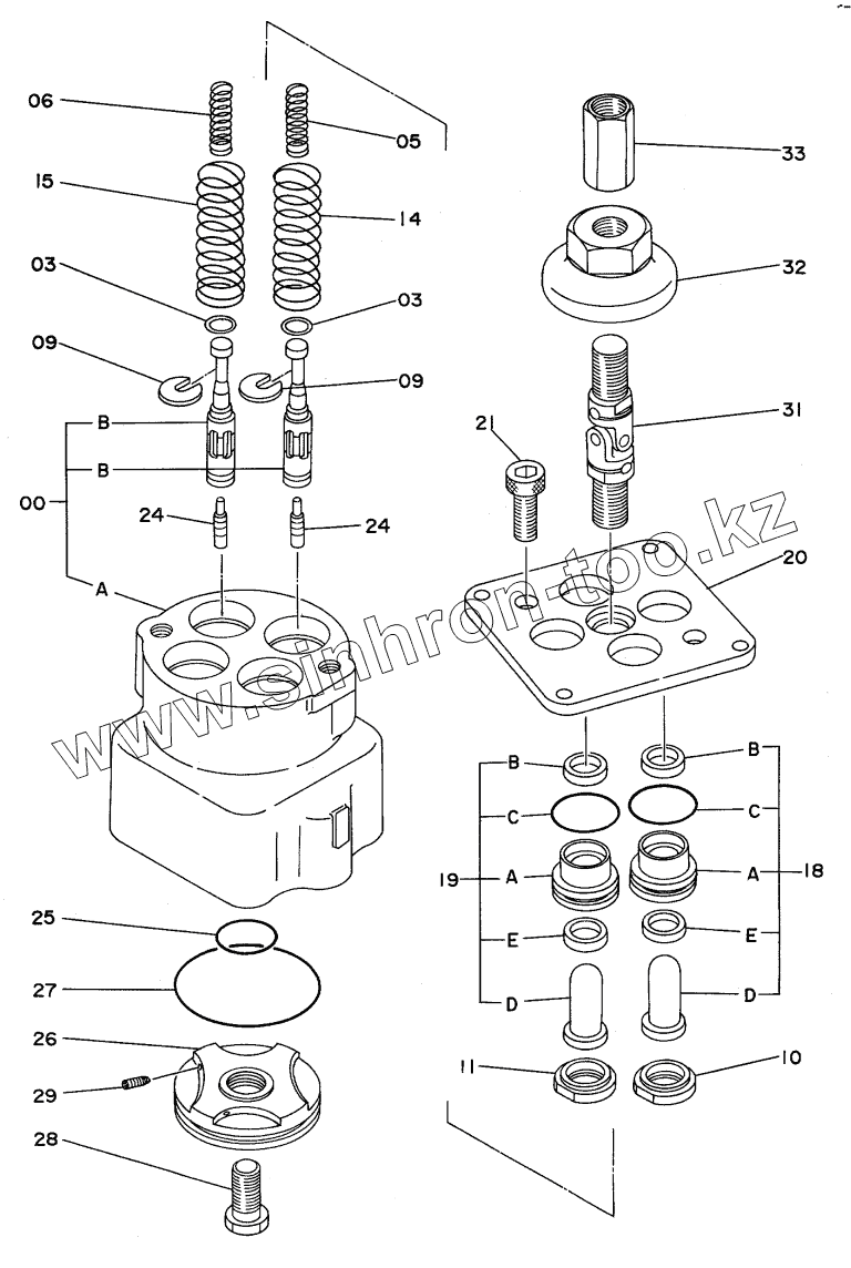 Каталог запасных частей к технике: Hitachi Компоненты EX-100WD. VALVE, PILOT (L)