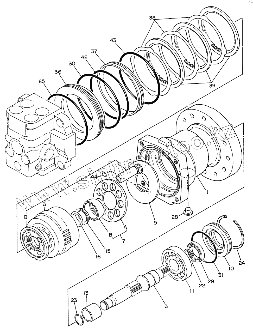 Каталог запасных частей к технике: Hitachi Компоненты EX-120. MOTOR, OIL (1/2)