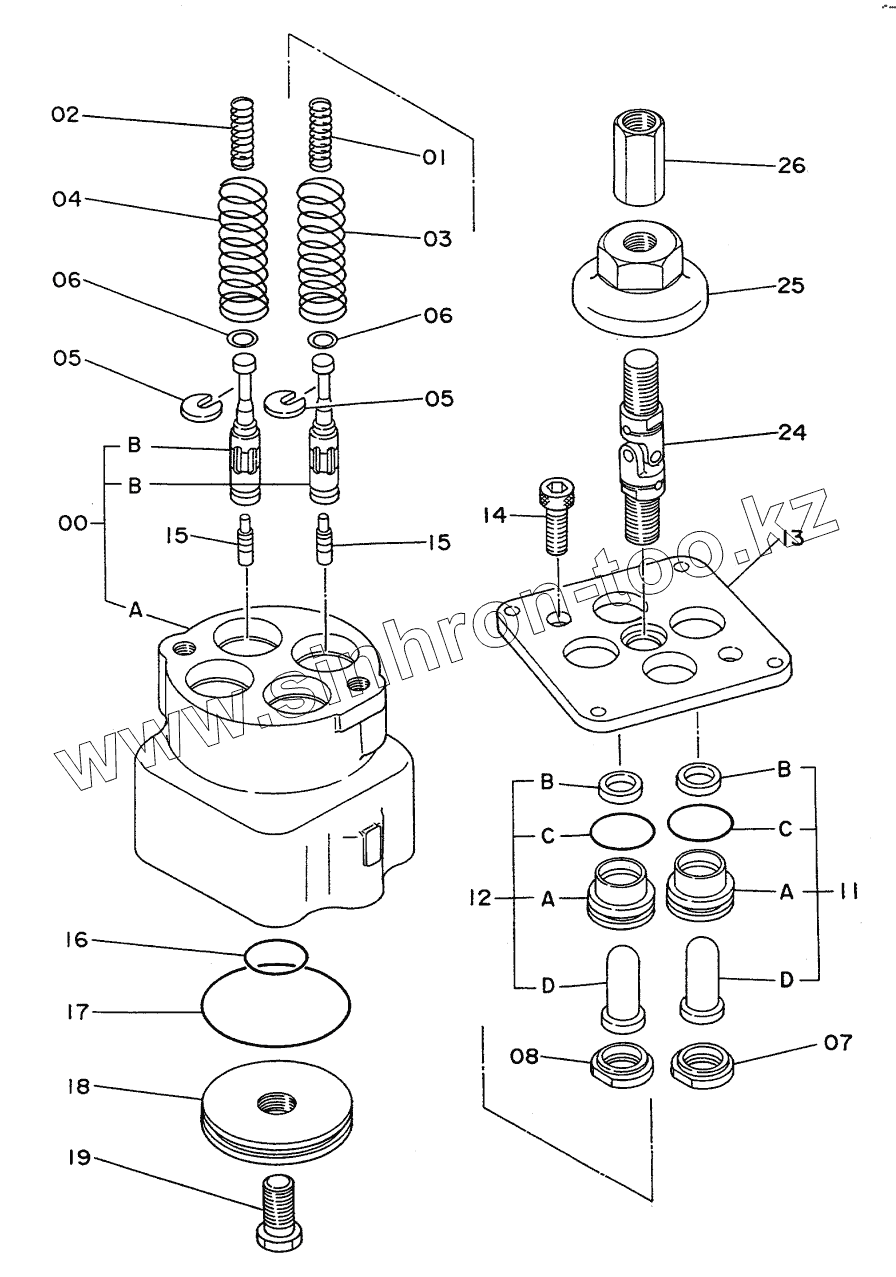 Каталог запасных частей к технике: Hitachi Компоненты EX-120. VALVE, PILOT