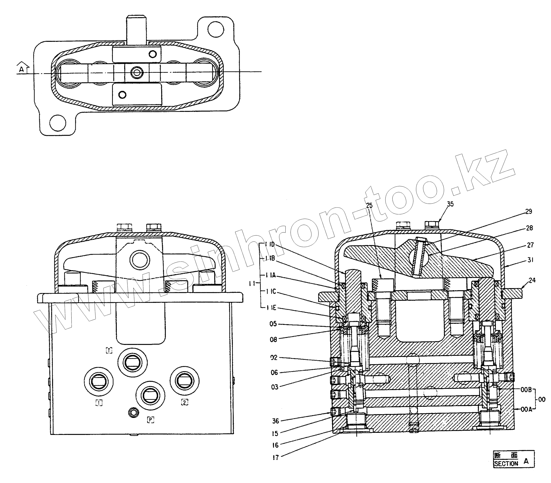 Каталог запасных частей к технике: Hitachi Компоненты EX-120. VALVE, PILOT