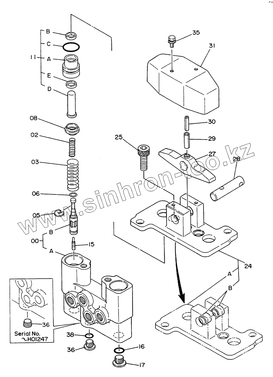 Каталог запасных частей к технике: Hitachi Компоненты EX-120. VALVE, PILOT