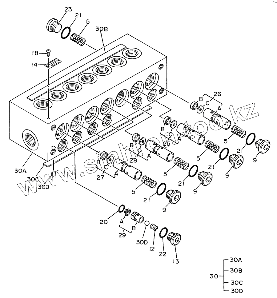 Каталог запасных частей к технике: Hitachi Компоненты EX-120. VALVE, SHOCKLESS