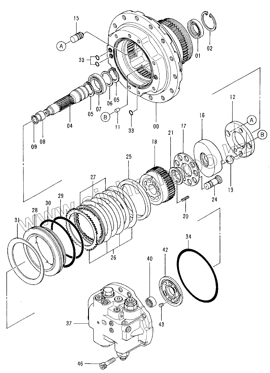 Каталог запасных частей к технике: Hitachi Компоненты EX-120-2. MOTOR, OIL (TRAVEL)