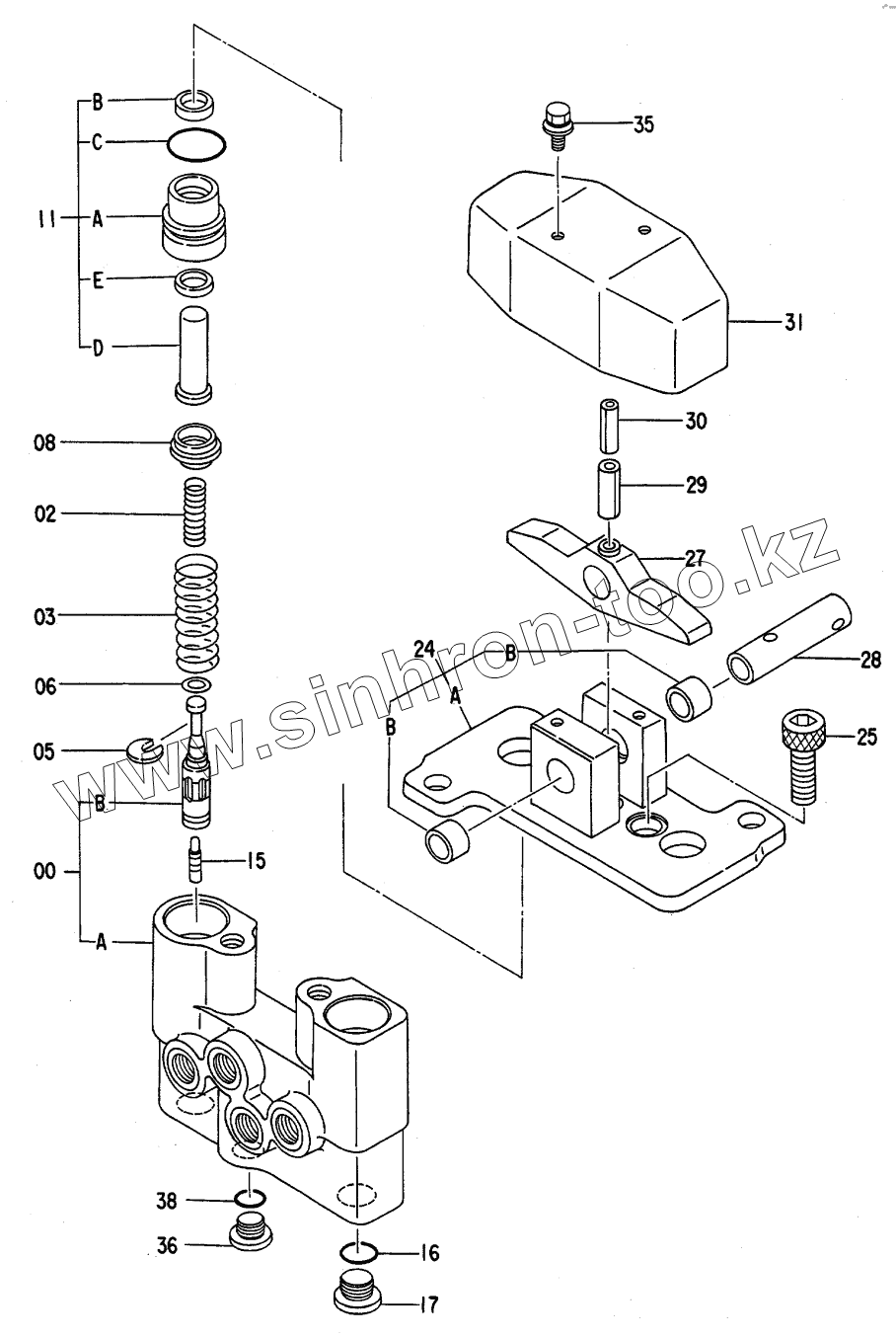 Каталог запасных частей к технике: Hitachi Компоненты EX-120-2. VALVE, PILOT