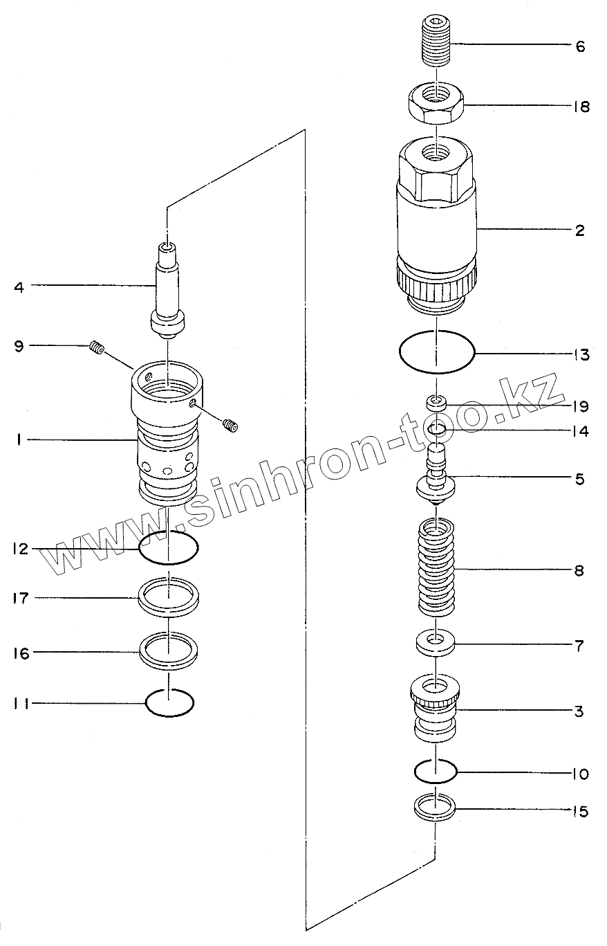 Каталог запасных частей к технике: Hitachi Компоненты EX-120-2. VALVE, RELIEF Serial №30001-D92/12