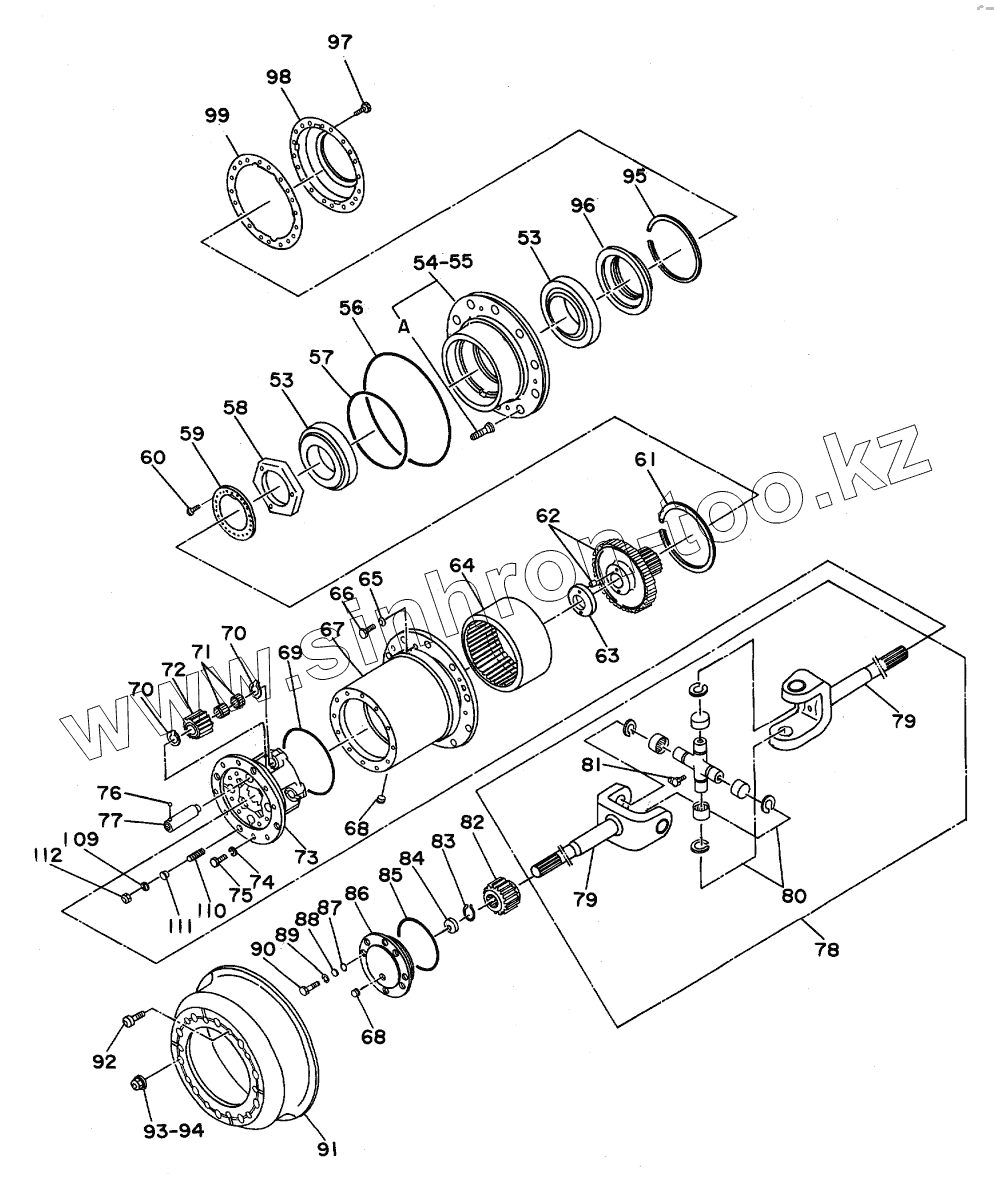 Каталог запасных частей к технике: Hitachi Компоненты EX-160WD. HUB REDUCTION (FRONT)