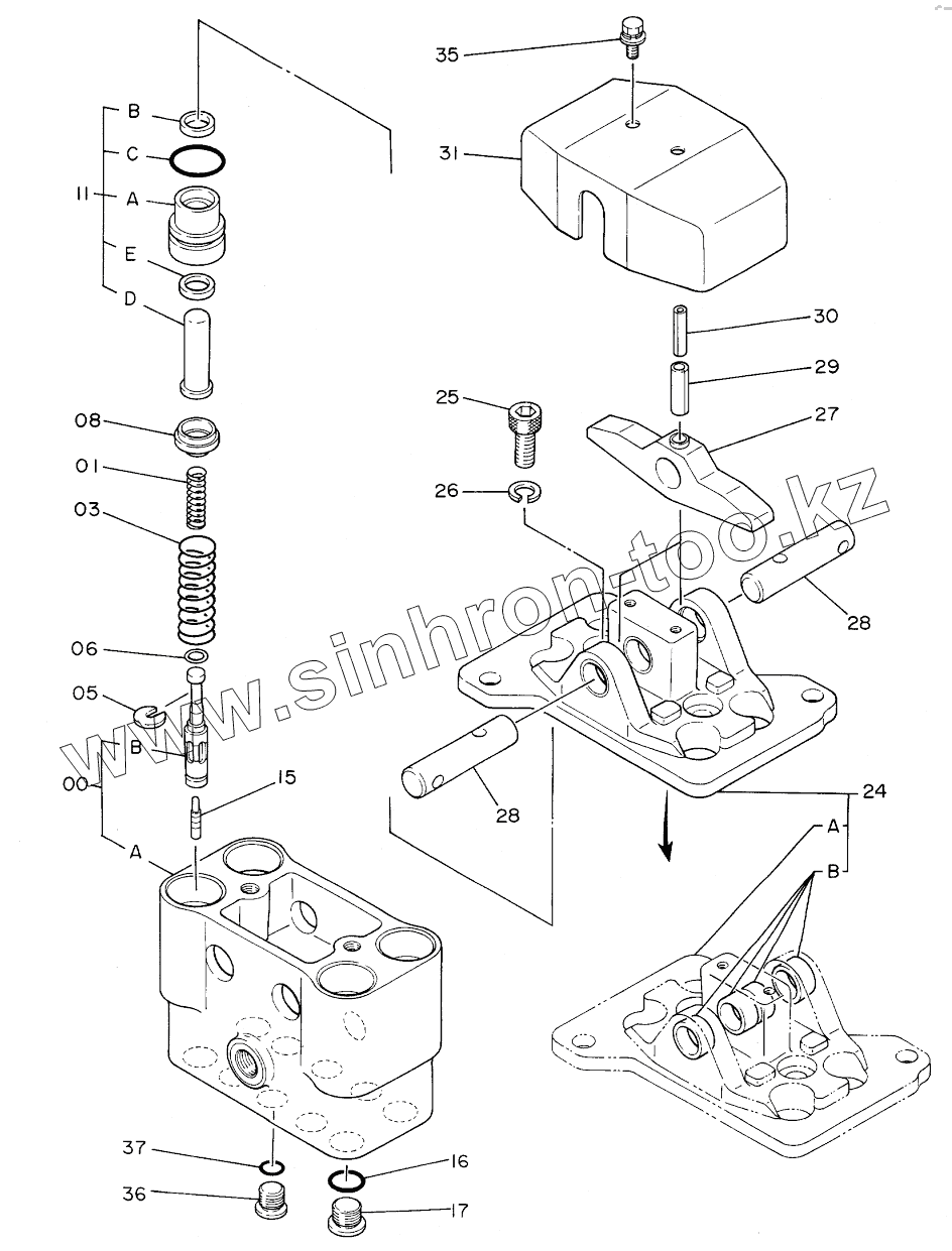 Каталог запасных частей к технике: Hitachi Компоненты EX-160WD. VALVE, PILOT