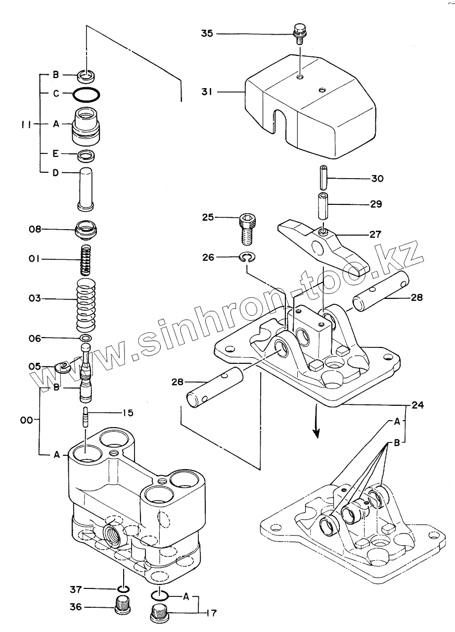 Каталог запасных частей к технике: Hitachi Компоненты EX-160WD. VALVE, PILOT