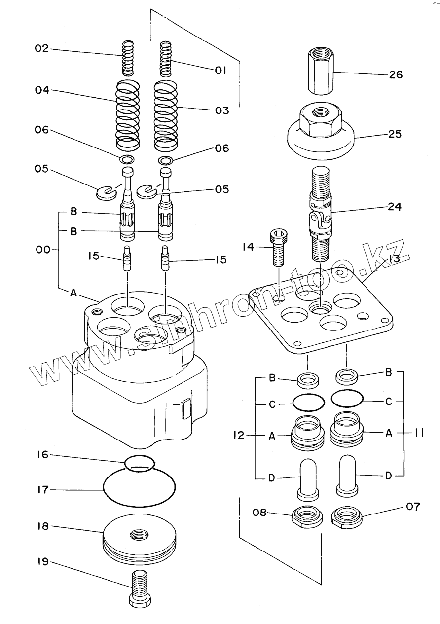 Каталог запасных частей к технике: Hitachi Компоненты EX-160WD. VALVE, PILOT (R)
