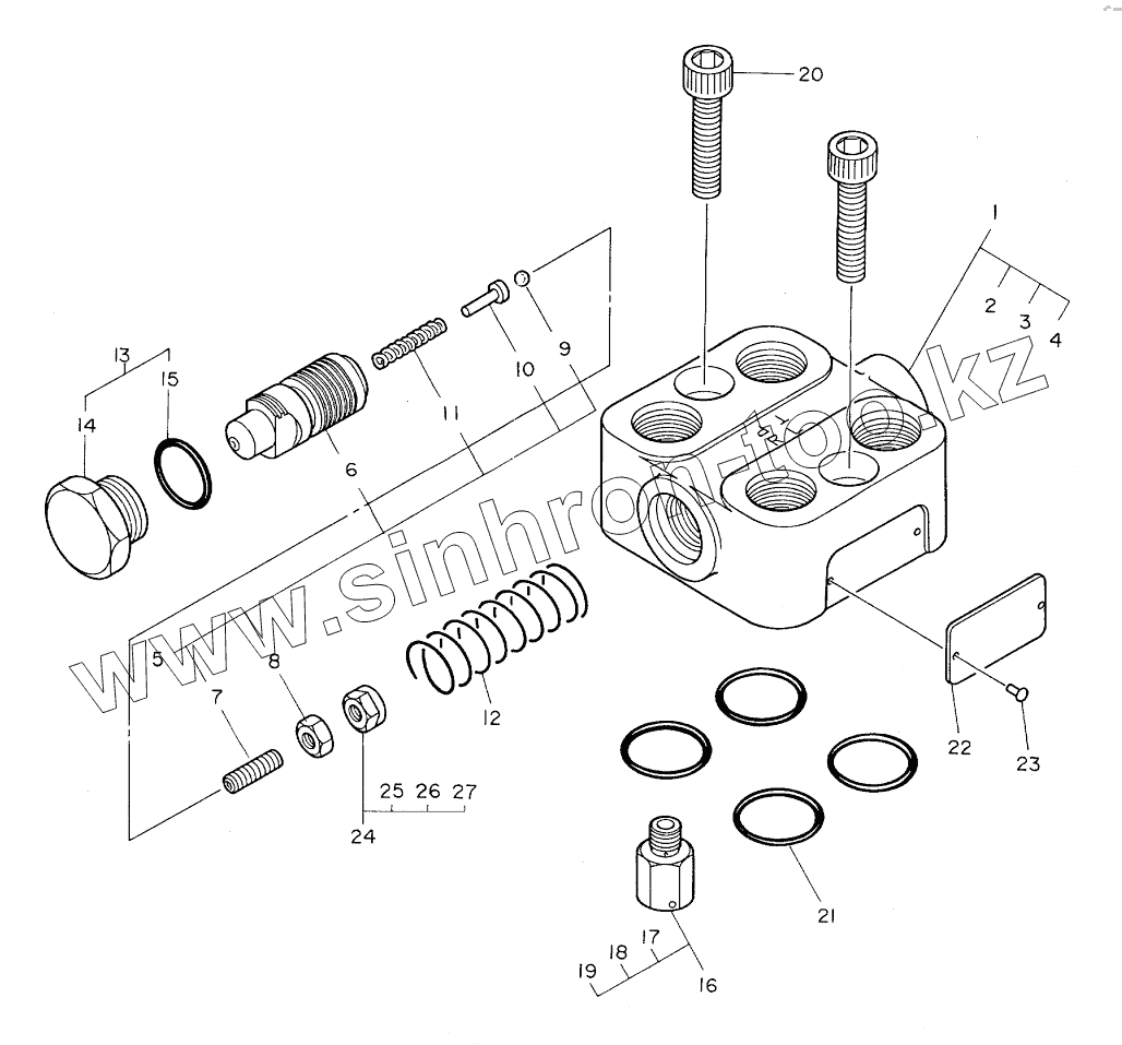 Каталог запасных частей к технике: Hitachi Компоненты EX-160WD. VALVE, RELIEF
