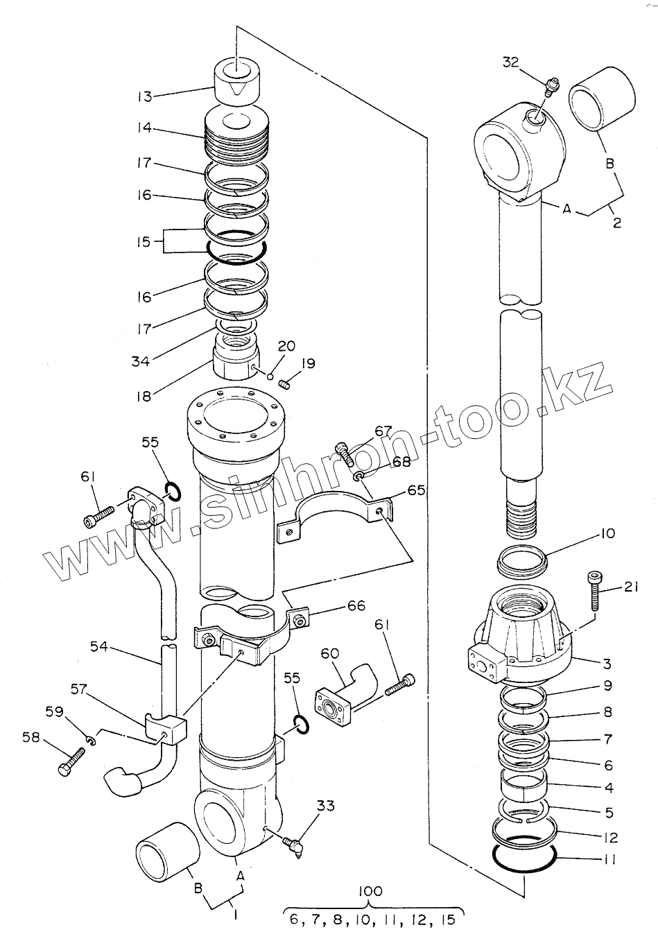 Каталог запасных частей к технике: Hitachi Компоненты EX-200. CYL., BUCKET