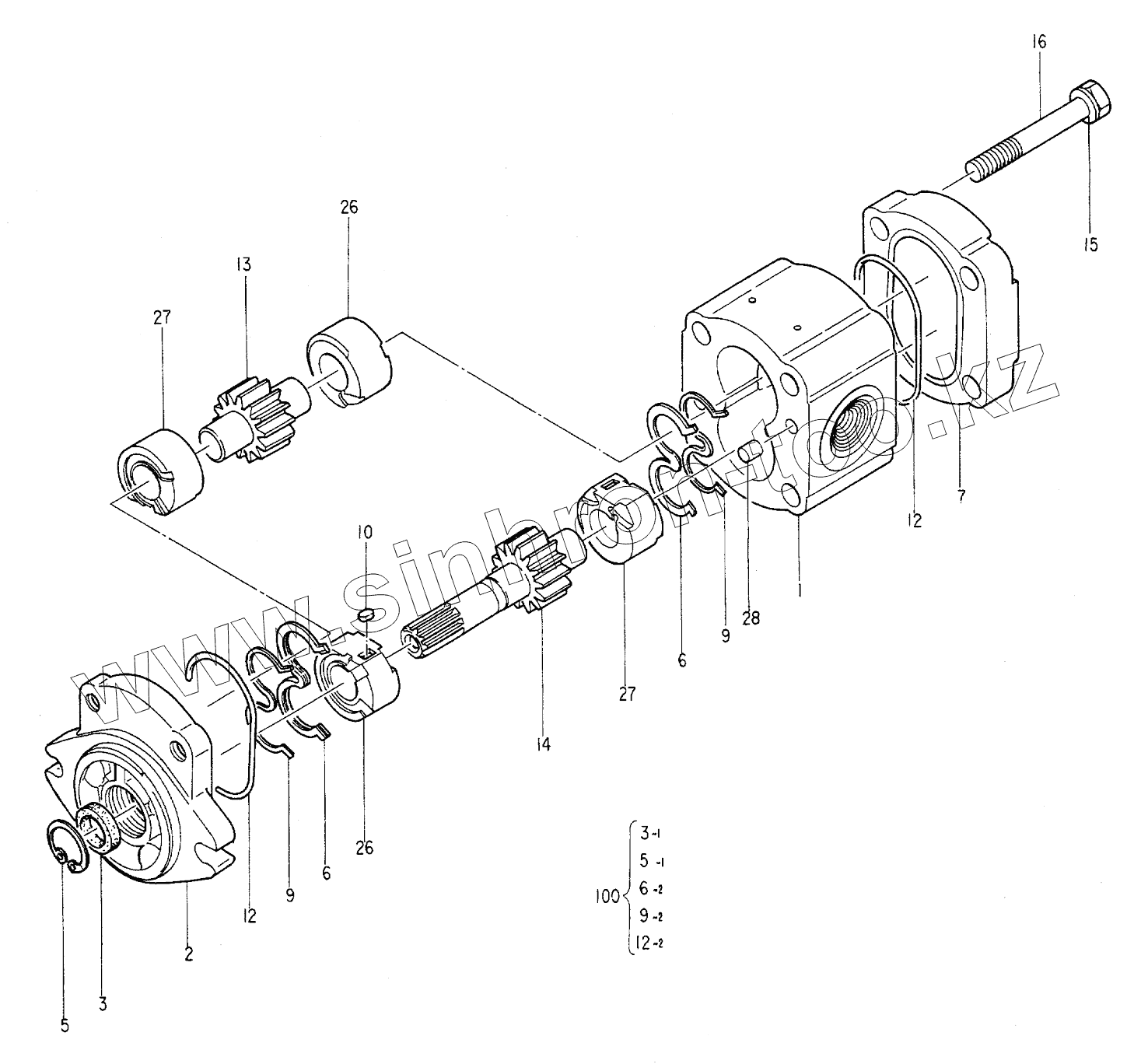 Каталог запасных частей к технике: Hitachi Компоненты EX-200. PUMP, GEAR